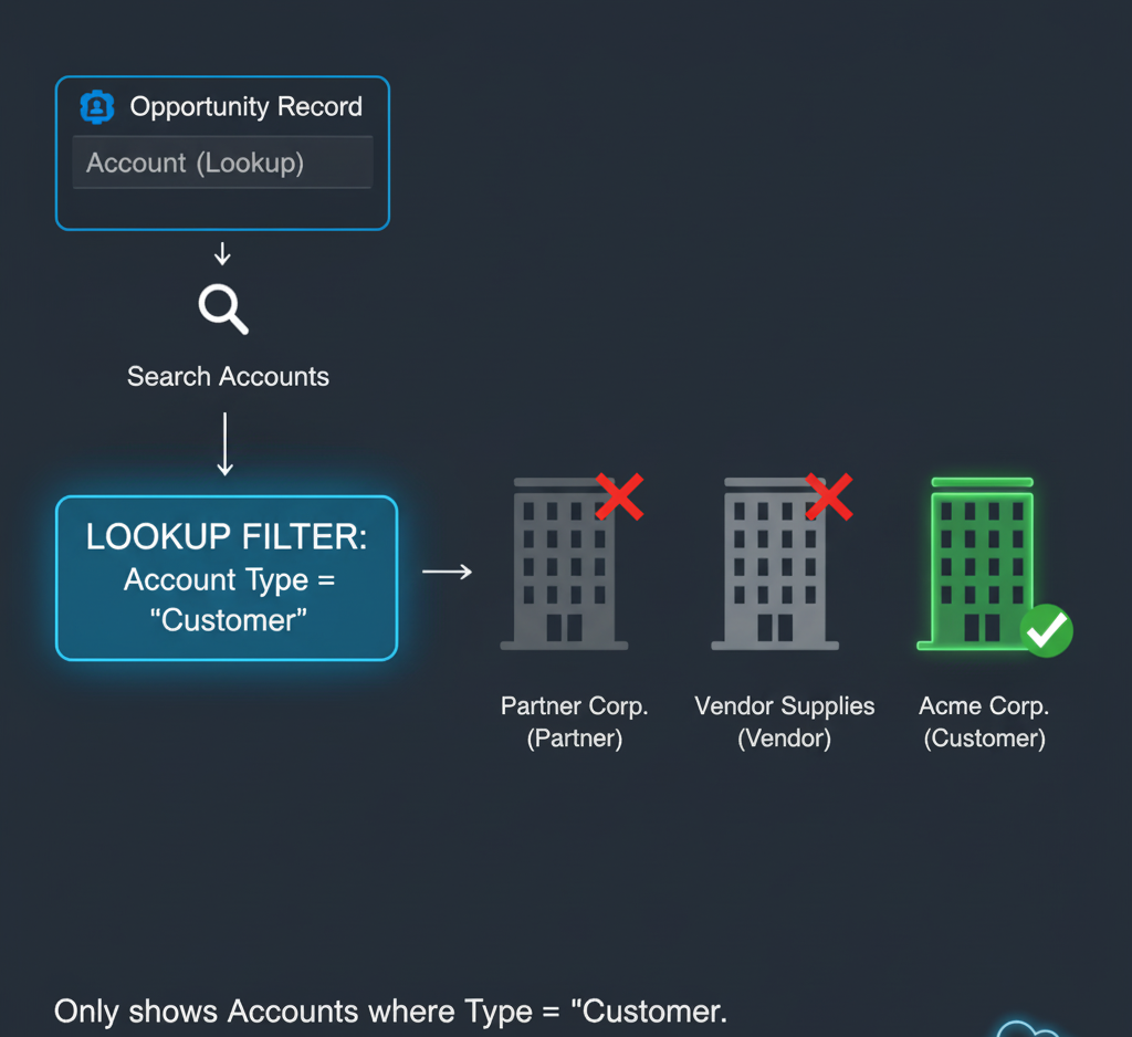 A Lookup Filter ensures that users only link records that make sense according to your business logic.